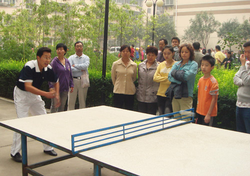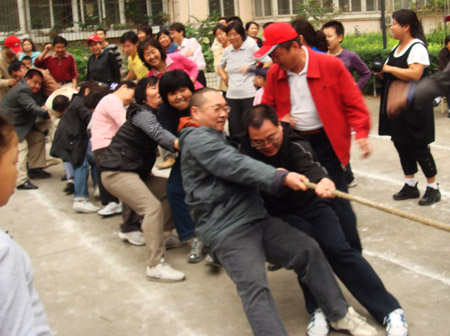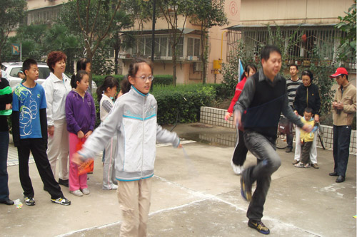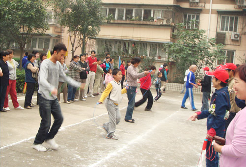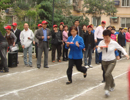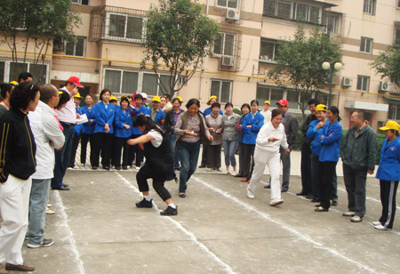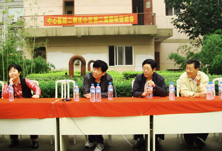二府庄小区第二届职工家属趣味运动会”。 上午九时许,运动会在崔主任主持下召开。参加开幕式的有我院领导冯关力、薛军、刘遵礼和三产办副主任张立新同志,以及区、街道办相关负责人。冯院长对我院二府庄小区筹办这次职工家属趣味运动会给予了充分的肯定:三产办暨小区物业办通过举办多种形式的活动,不仅活跃了小区职工家属的文化生活,使邻里间建立起了友谊与和谐的桥梁;而且还提升了我院小区职工家属的全民健身意识,增强了物主与物业办的相互信任。 这次运动会设有个人跳绳、集体跳绳、自行车慢骑、托球跑、乒乓球及拔河比赛等项目。运动场上参赛人员个个摩拳擦掌,你追我赶,奋勇拼搏;围观群众喜笑颜开,呐喊助威。大家兴奋地说:这次趣味运动会不仅丰富了我们的业余文化生活,而且还对构建和谐社会,增强社会主义精神文明建设起到了积极的作用。