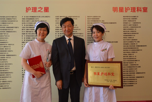 我院消化内科荣获“陕西省明星护理科室”荣誉称号。护理部主任张巧玲同志荣获“陕西省护理之星”、 “西安市最美护士”。