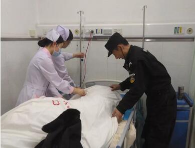 患者随身物品仅有身份证、酒店入住卡、银行卡及医保卡,未发现手机。为了和患者家属取得联系,我院人员积极主动联系派出所后,又凭借患者所住酒店的房卡联系家属,但最终仍未取得有效的联系方式。由于患者昏迷伴呕吐,随时有出现呕吐后窒息可能,并且患者没有陪人,十分危险。职业病科李旭护师、实习同学李慧君及保安队张红军全程陪护患者,为患者移床、翻身、擦拭呕吐物,义务陪护患者以防患者出现误吸,全程任劳任怨毫无怨言。