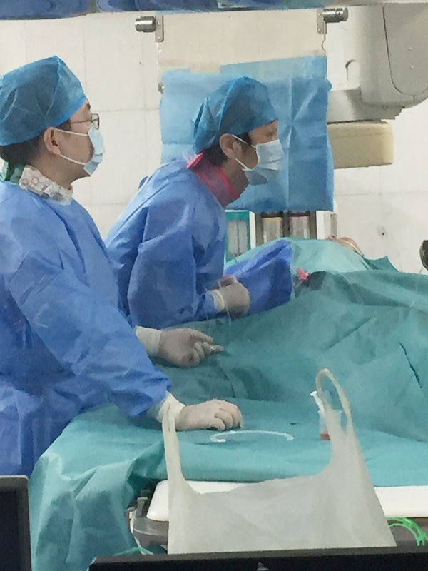 2月上旬,患者董某某因左侧臀部一巨大包块,于外院就诊,并行左臀包块切除术,术后病理提示血管瘤。但是手术创面持续渗血,无法愈合,并形成血肿,遂辗转来到我院,住院后查凝血象结果提示APTT延长,进一步查凝血因子VIII活性为35%,较正常少了一半,明确诊断为血友病A。给予凝血因子VIII进行治疗,同时给予抗感染、止血等对症治疗,请烧伤整形科韩悦主治医师会诊,给予间断换药治疗2周,伤口出血减少,但仍愈合困难,烧伤整形科陶谏主任医师会诊后行左臀部创面血肿清除探查术,术后一度平稳。谁知风云突变,在03月08日00:03分,患者翻身后,臀部伤口大出血,面色苍白,呼吸急促,血压降至52/29mmHg,发生失血性休克,病情危急,我们立即给予补液、维持血压,联系输血科,紧急输血等抢救措施,同时再次请烧伤科会诊,陶谏主任医师凌晨2:20急诊手术抢救,由于出血部位临近盆腔,邀请骨一科王涛主任医师协助手术,术中可见创面深部有一粗约7-9mm疑似动脉血管组织,考虑出血可能为残余血管瘤所致,多次缝扎后,出血停止,术后安返病房。据陶谏主任医师介绍,由于血管瘤周围组织松脆,缝扎效果不确切,易再次出血,一旦出血,动脉血管可能缩入盆腔,患者生还可能性微乎其微,建议进一步于介入科行血管栓塞术。普三科副主任医师陈巍同样建议行局部血管栓塞治疗。急请介入科王义清主任会诊后认为直接行介入治疗,风险较高,建议完善血管CTA检查后,再决定是否能进行血管栓塞术。考虑患者有活动性出血,若行CTA检查风险极大,向宋艳萍主任汇报后,立即向医务科刘超科长,杜威副科长说明情况,医务科高度重视,并协调各科室,做好充分准备,畅通救援通道。烧伤科茹战峰主任、陶谏主任医师表示,如果在CTA过程中,发生意外,将全力以赴救治患者,骨二科张延平主任与普三科田立民主任均表示若出现意外情况,第一时间协助抢救。宋艳萍主任向放射科邬小平主任说明患者目前病情危急,急需进行CTA检查并做好了抢救准备,邬小平主任说道:没问题!我们同心协力,全力救治该患者!在影像科周密、细致的安排下,顺利完成CTA检查。介入科王义清主任阅片后认为有介入治疗指征,当日下午4点30分顺利完成经皮左髂内动脉DSA+血管栓塞术,止血效果确切。后伤口逐渐恢复,烧伤科继续于血研所为患者间断换药,未再出血,病情持续稳定,于03-22痊愈出院。 出院时患者流出了激动的泪水,他说:“是你们按摩视频 的医生给予了我第二次生命,感谢你们!”