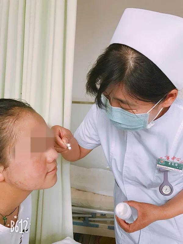 小姑娘自诉4年前进食过期的方便面后出现颜面及手背多发红色皮疹,伴瘙痒,多次治疗,曾有所减轻,此后每遇阳光照射或遇热后症状就会加重,因为我们医院和西藏地区有帮扶关系,为进一步治疗,收住了我们职业病科。小姑娘来时很害羞,老躲在父亲身后,也不爱说话,更不会理我们,爸爸不懂汉语,小姑娘也只会简单的汉语,随行而来的还有一位翻译,住院后翻译只是简单的交代了一下住院事宜就走了,把小姑娘彻底的交给了我们。由于语言不通,治疗和护理都十分困难,责护霍玺娟从住院开始就特别关注这个小姑娘,标本留取、口服给药、会诊、检查……都亲力亲为,全程陪同,怕小姑娘听不懂,每次的解释工作都要语速很慢的说好几遍,再加上各种手势的比划。皮肤科开的药物,每天都准时亲自给涂上。住院14天,小姑娘的病情有了很大的改善,现在,我们每天查房、护理的时候都会主动的和我们说话,叫我们“姐姐”,每次护理操作后都会都会微笑着双手合十鞠躬说“谢谢”,看到护理工作得到认可,我们也是开心的。小姑娘今天出院了,还跟我们约好,下次来西安的时候,一定来看我们。