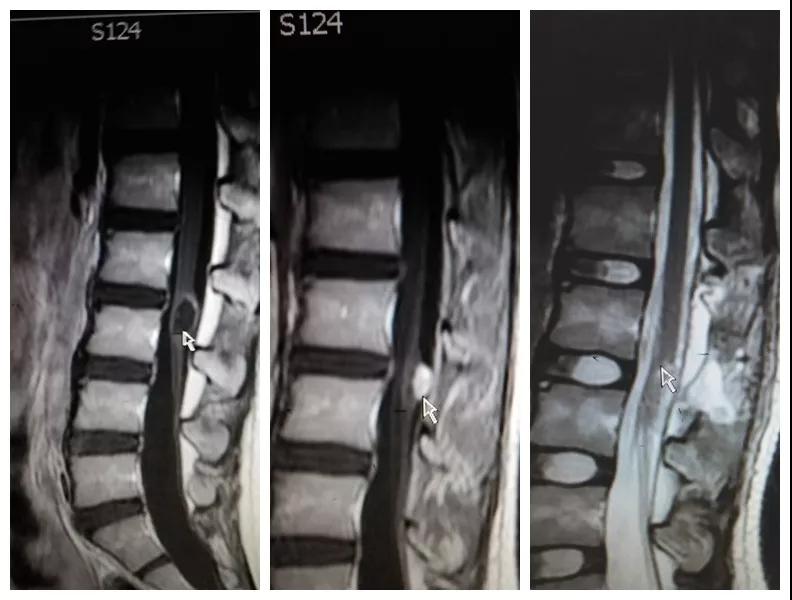 2018年8月,孩子母亲带着一线希望慕名找到按摩视频 神经外科王占尧主任医师。王医生通过详细询问病史、查体、完善相关检查后,明确诊断患者为腰3椎管脊髓内畸胎瘤、硬脊膜外脂肪瘤、脊髓栓系综合症、骶尾部皮毛窦。王占尧耐心与家属沟通病情及手术方式,因手术难度大费用较高患者家属有些犹豫,随后又到西安多家医院咨询,最终选择在中心医院神经外科手术。因患者椎管处有不同部位的四个病变,还伴脊髓内畸胎瘤,分几次手术安全性高但是存在再手术医疗费用高、住院时间长耽误孩子上学等问题,如果选择一次手术切除则存在手术时间长、肿瘤是否能最大限度的全切、污染手术与清洁手术同时进行等系列问题。王占尧主任医师组织医疗团队反复讨论患者病情、斟酌手术方式、评估手术风险、制定详细的手术方案,最终决定在全麻下一次手术为患者同时切除四个病变部位。孩子的父母是一辈子面朝黄土背朝天的农民,面对术前谈话时主管医生提到的种种风险,他们不能完全理解,只是落泪重复:“孩子是我两的希望,我们就把孩子交给你了王大夫!”王占尧正是承受着一旦手术失败,孩子可能原有症状加重、甚至终身大小便失禁、双下肢瘫痪的压力,带着孩子父母沉甸甸的希望走进手术室。