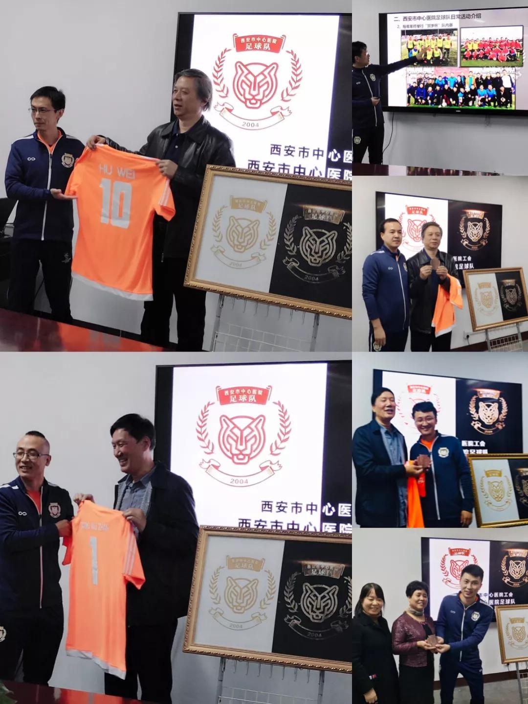 首先,足球队队委会教练黄新介绍了球队的成员、训练、比赛交流的情况:按摩视频 足球队自2004年建队以来,每周坚持训练近15个年头,历经寒暑易节,人员更迭,仍不忘初心,努力拼搏。始终把“锻炼与学术并重,足球与学术起飞”作为球队的建队方向和口号,多年来坚持不懈。之后,王书记做了重要讲话,肯定了我院足球队多年以来坚持不懈训练的精神,并借本届新的工会成立的契机,对我院足球队发展表示关怀和支持,提出更高的要求:以足球队为代表,体现医院职工的凝聚力及医院全面发展的文化内核,奋进超越,与时俱进。随着王书记和虎院长与我院足球队队委会成员举行球队队徽揭牌仪式,标志着我院足球队正式成立,纳入我院工会管理。随后虎威院长也发表了重要讲话,虎院长说:球队是我院的缩影,代表着我院精神,队徽有猛虎,比赛也要如虎似狼,不仅球队要成为虎狼之师,在临床工作上我们也要有如狼似虎的拼搏精神。之后,队长孙为及队长付锋勃分别向虎院长赠送“10号”队服及队徽,特聘虎院长为荣誉队长。领队张立新及领队崔鑫分别向王书记赠送“1号”队服及队徽,特聘王书记为荣誉领队。教练郑南波向两位工会副主席惠再娥及肖瑛赠送队徽。最后,整齐划一地身着新队服的英姿勃勃的球队队员与工会成员及院领导集体合影,仪式圆满结束。