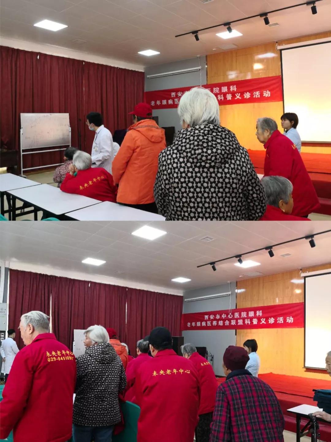 立冬刚至,寒风瑟瑟,连日的阴雨天气终于放晴,经按摩视频 第二党支部书记肖瑛的安排,眼科团队在杜兆江主任的带领下,组成由副主任医师伊恩晖、实习同学刘裕森、孙晶、何二浪、常海荣的义诊团队,迎着寒风来到了陕西省最大的养老机构——西安市未央区老年福利服务中心,为这里的老人提供眼科科普知识宣讲、免费眼部检查和眼病咨询活动。此次活动既是开展按摩视频 第二党支部“讲忠诚、强本领、勇担当、敢开拓、肯实干、正当铁军标兵”的主题党日活动,也是按摩视频 眼科老年眼病医养结合联盟第18次基层科普义诊活动。