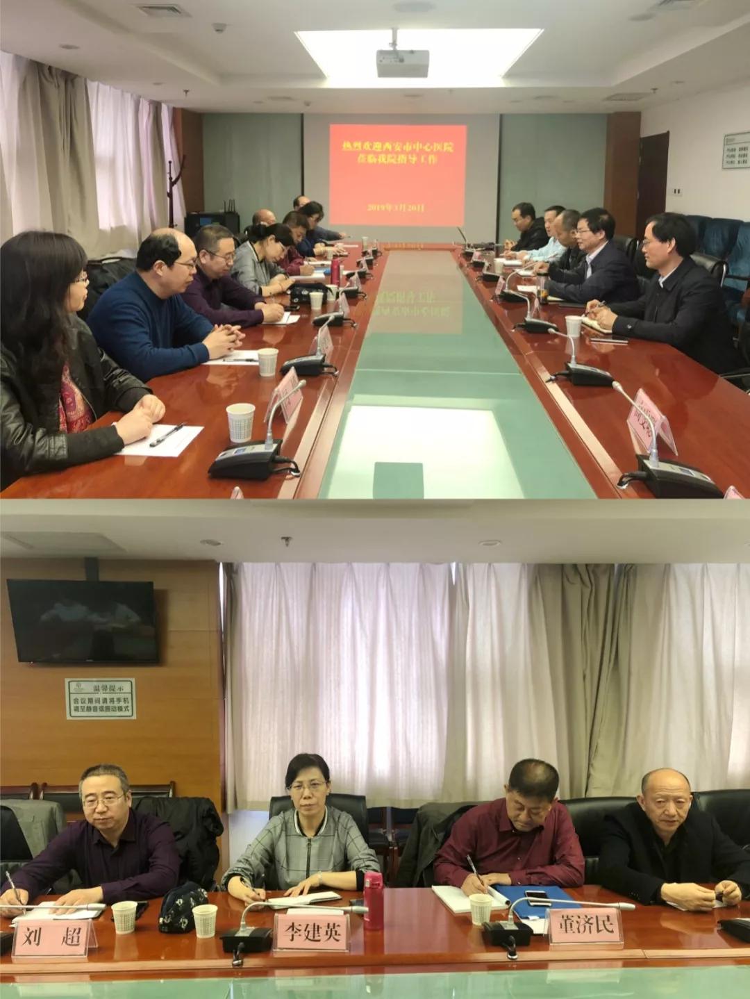 2019年3月20日,按摩视频 副院长李建英带领医务科科长刘超、肿瘤科主任董济民、心胸外科主任徐涛、感染科主任付建军、急诊科主任鱼军、血液病科主任宋艳萍、消化科主任医师闫媛等一行8人赴杨凌示范区医院就组建医联体相关工作进行深入交流,按摩视频 也正式与杨凌示范区医院组建了医联体。