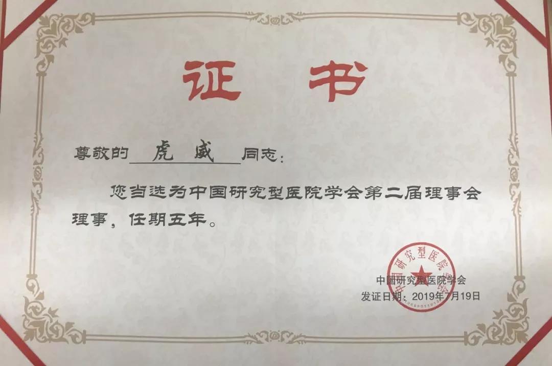 此次虎威院长当选为中国研究型医院学会理事会理事,是对我院在研究型医院建设工作方面的肯定,同时在提升我院品牌影响力,推动学科建设及人才培养方面具有积极的作用。