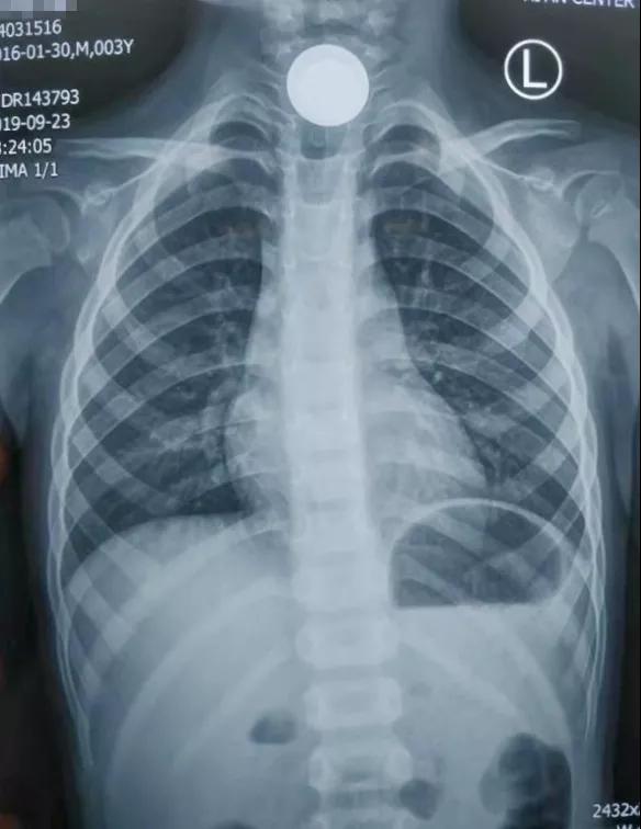 耳鼻喉科值班的主治医师王占江闻讯赶紧把孩子带进检查室,一问才知道,原来宝宝拿硬币玩,不小心将一枚一块钱硬币咽下去卡嗓子里了。孩子难受指着嗓子不停哭泣,痛苦的都说不清话了,家长心急如焚,经过详细的专科检查,王医生赶紧让孩子去拍了片子,出乎意料的是——宝宝食道里竟然卡顿了两枚硬币,一枚一元硬币一枚一角硬币!