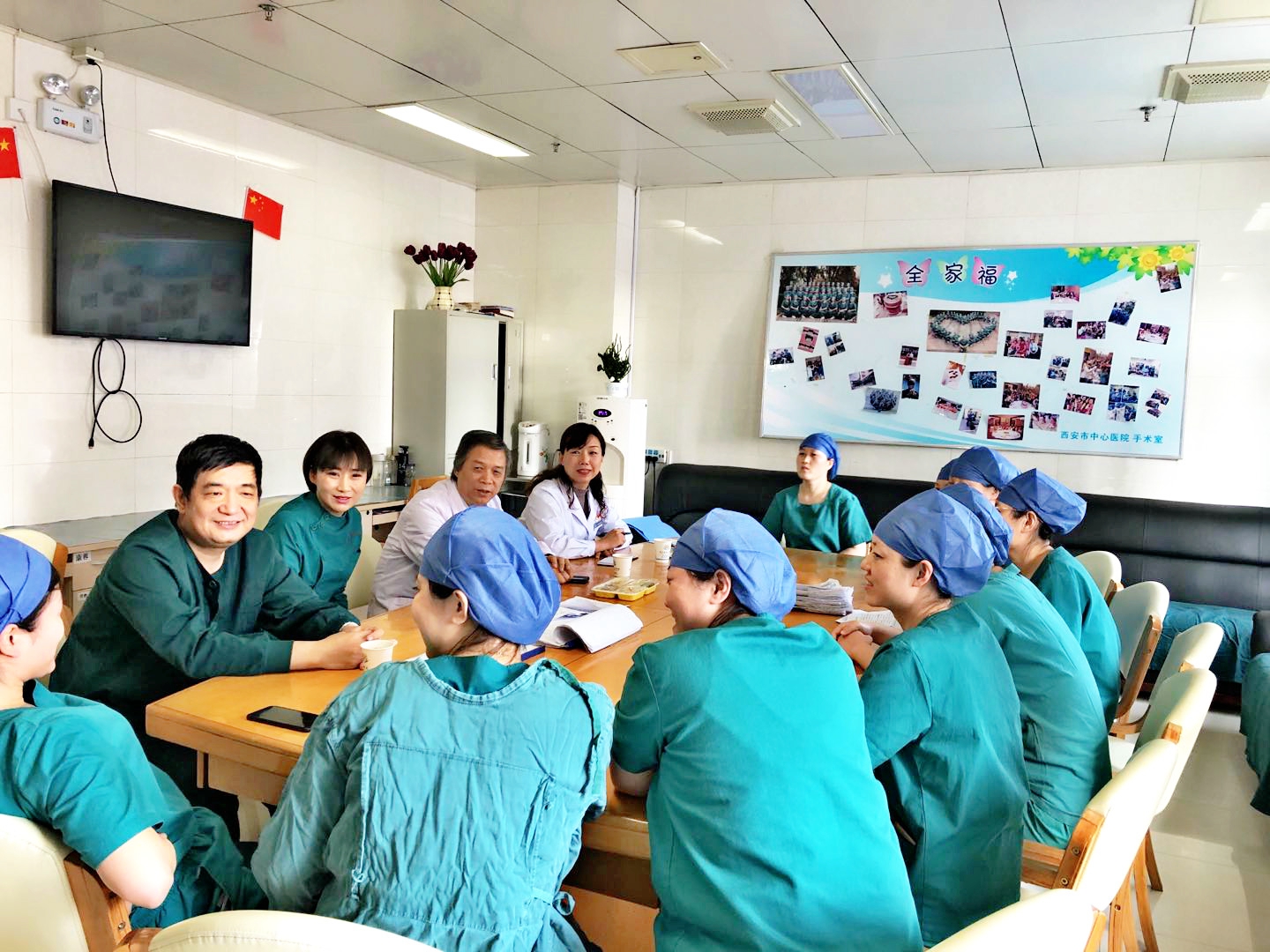 不知不觉两个小时过去了,虎威院长从工作环境、工资绩效待遇、人才后续储备、工作配餐质量、医院信息化建设等方面与与会人员进行了充分的交流和深入的探讨,大家诉说了工作及生活上的困难,并对科室和医院提出了宝贵意见及建议,例如:希望医院加强手术室的人才后续储备,进一步明确急诊手术指征,完善手术室绩效考核制度,提高手术室工作配餐质量等等。