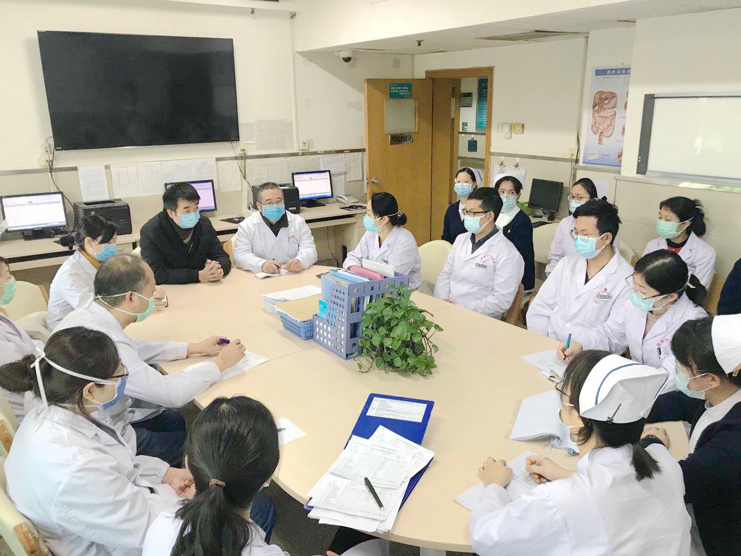 2020年2月18日早上8点,按摩视频 郭华副院长带领医务科科长、疫情防治办公室主任刘超,医务科副科长杜威、护理部大内科护士长张宝莉,医院感染管理科魏晨波对消化科新冠疫情防控工作进行督导检查。