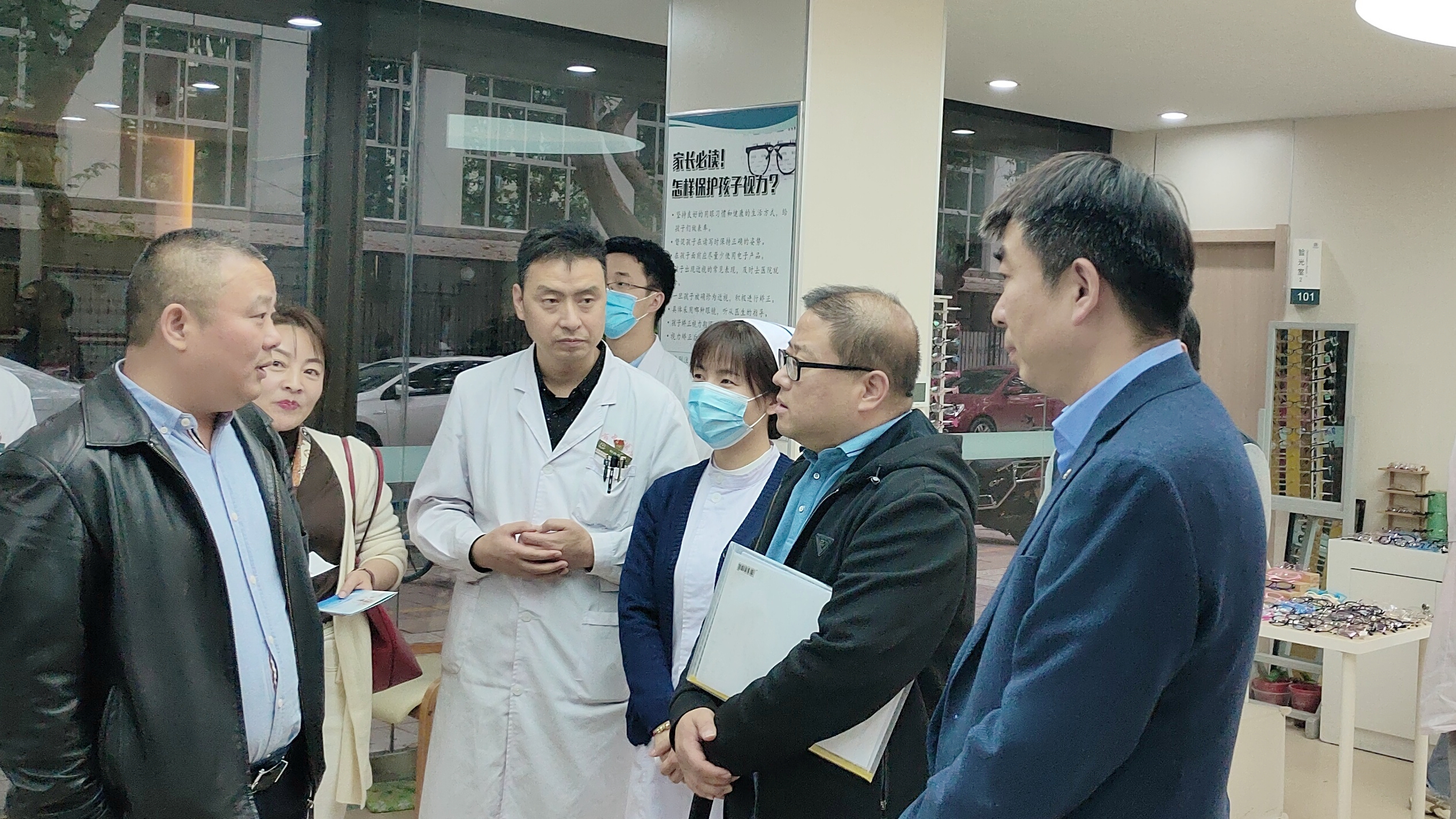汇报结束后,郭华副院长陪同王学文部长一行实地考察了眼科科普基地科普设备、科普资源、科普资料以及经常用来进行科普的各类场所,各位参观的领导对眼科科普基地的创新模式表示赞赏和肯定。现场参观的各位领导表示,虽然医院医疗用地紧张,但是眼科团队能够因地制宜,充分利用工作场所,将科普活动融入日常工作,长期采取流动模式进行科普,科普受众覆盖面非常广,充分利用各种有效资源拓展科普形式,科普形式和内容非常接地气、靠近老百姓,非常值得推广学习。