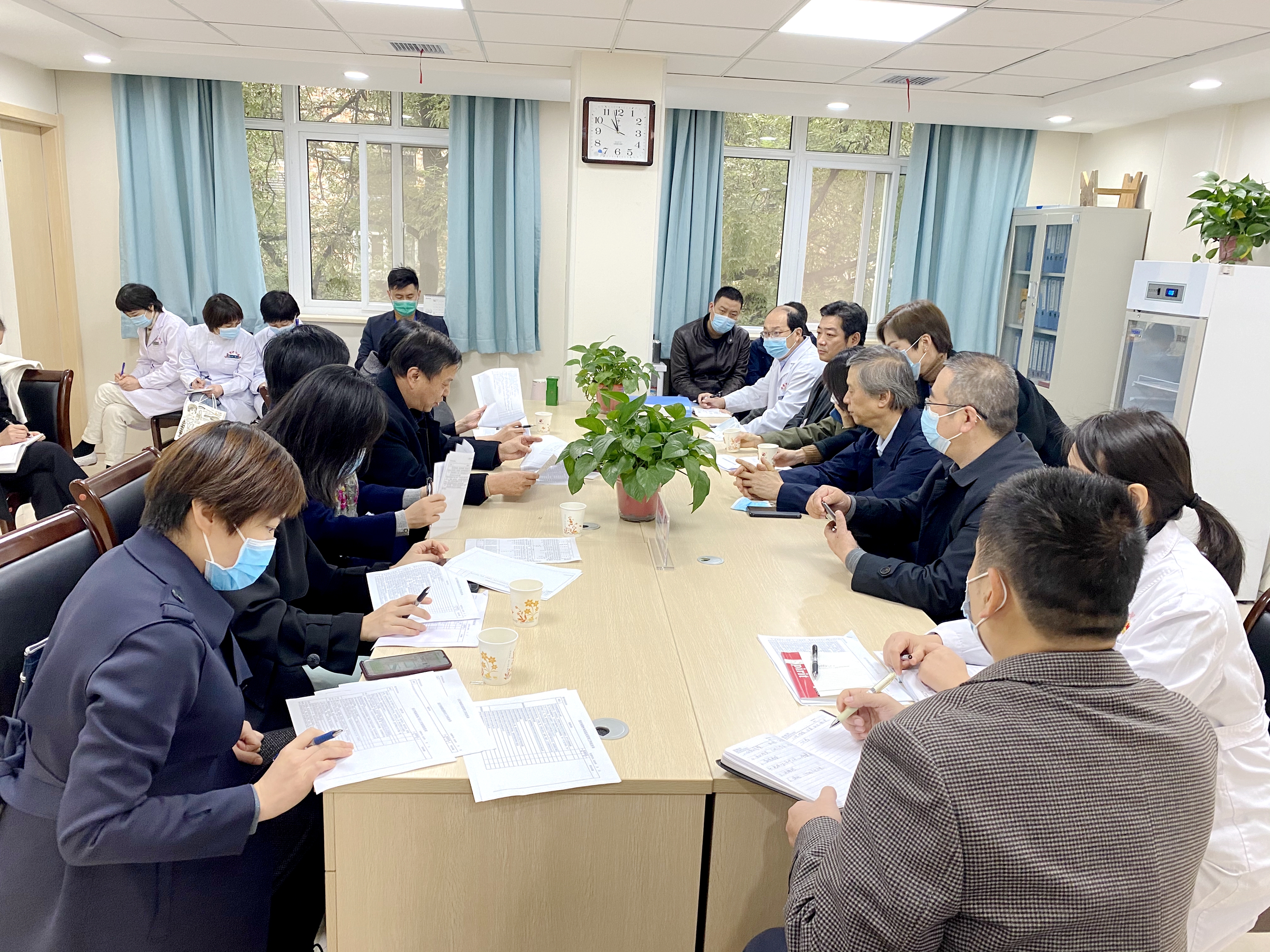 上午11:00,专家组人员依次经预检分诊扫码、测温后进入我院糖坊街院区,与虎威院长及各职能科室负责人就此次检查的目的和内容进行了交流。