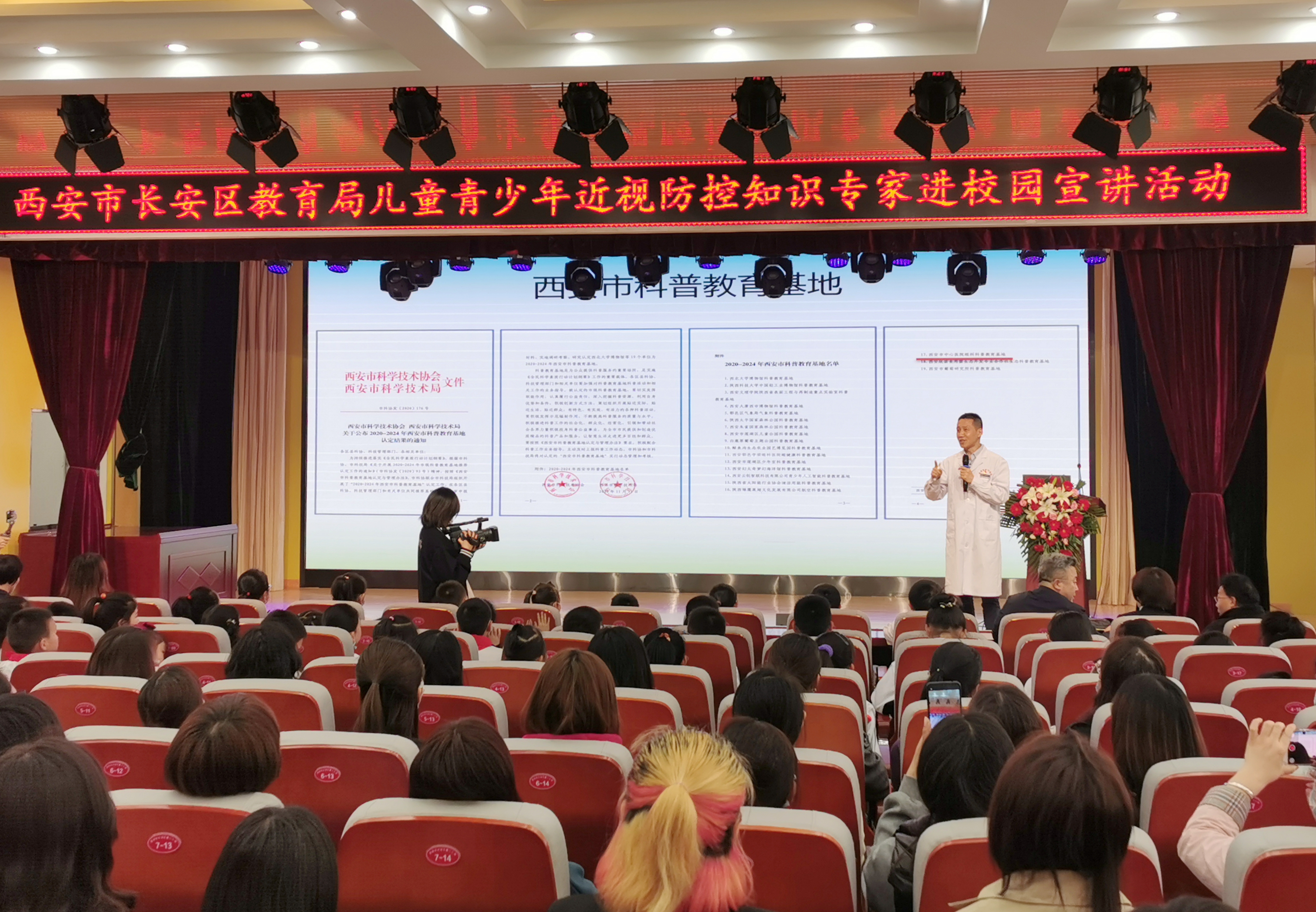 3月30日,陕西省首届综合防控儿童青少年近视特聘形象大使及专家团副团长杜兆江博士受邀来到了西安市长安区第二小学做了《儿童青少年怎么样做好近视防控》专题讲座。本次近视防控知识讲座的参加人员有西安市长安区第二小学学生、教育局相关领导、第二小学校长、教师、家长代表共200余人。