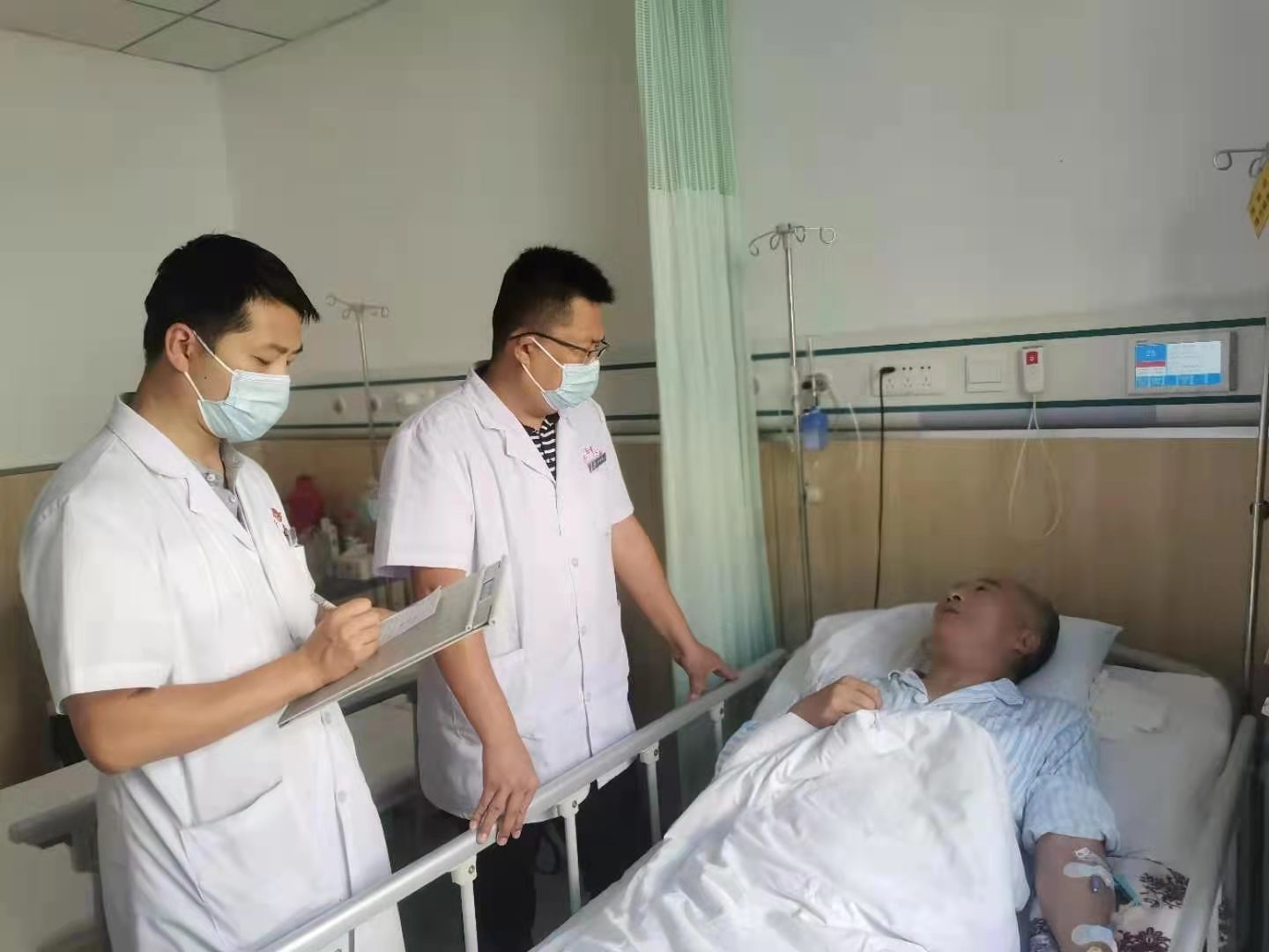 治疗与检查同时进行,护士以最快的速度在我的右手背上进行了留置针穿刺,点滴挂上了。
