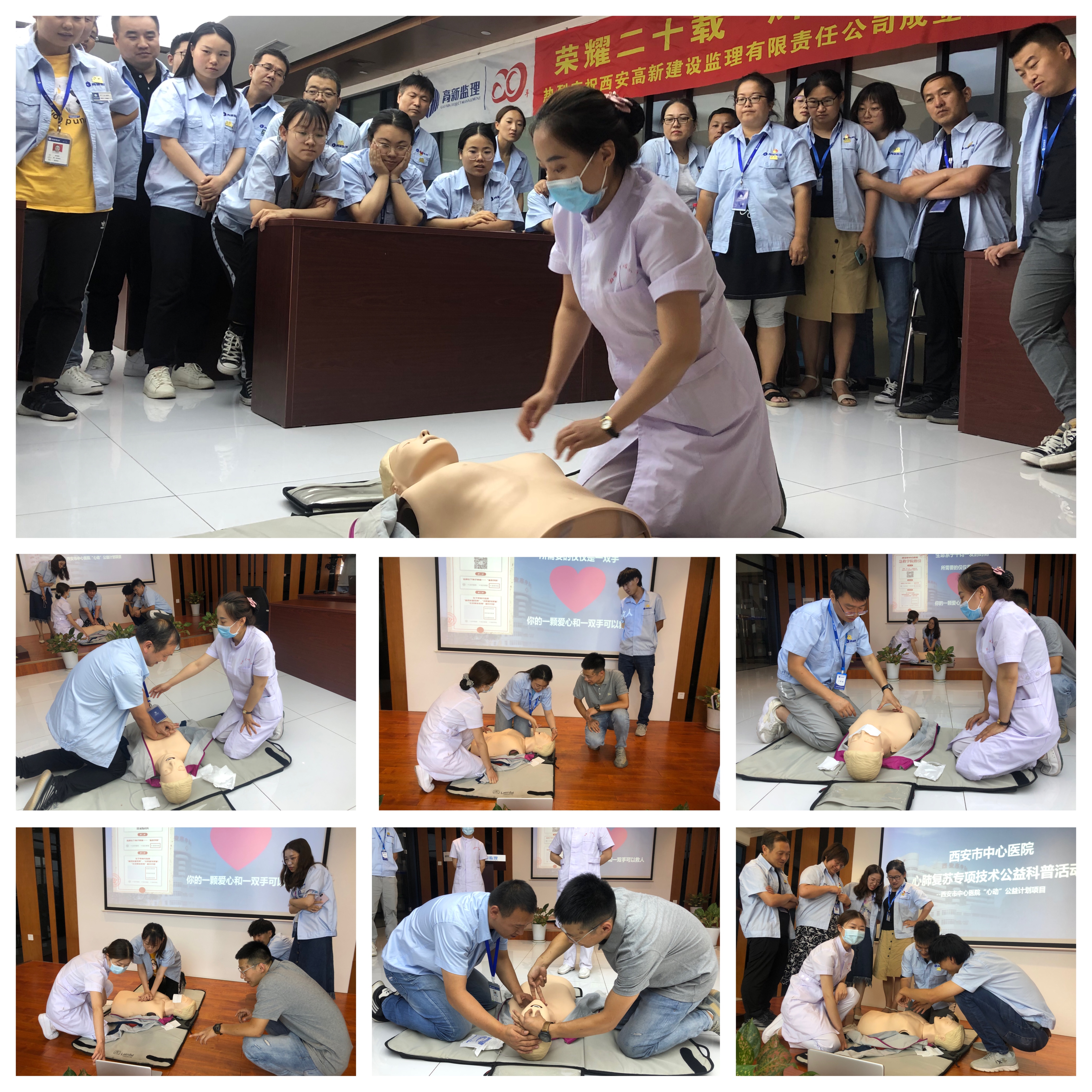随着急救社会化的不断推进,按摩视频 的“心动”公益计划实施以来,收到了社会各界良好的社会反响。7月16日,应西安高新建设监理有限公司的邀请,眼科副主任医师王晟宇,护师杨嘉俊,护师成晓婷组成的心肺复苏专家团队为西安高新建设监理有限责任公司的员工进行徒手心肺复苏的培训。培训会由西安高新建设监理有限责任公司行政综合部信息管理张豪经理主持。