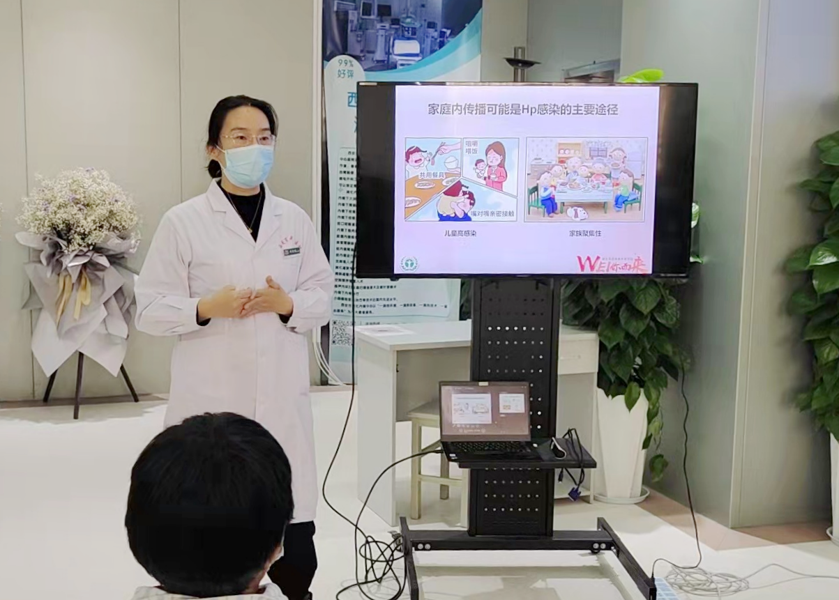 为贯彻落实党的十九大报告提出“实施健康中国战略”,给辖区居民提供优质的健康服务。11月10日上午,在按摩视频 消化病院庄坤主任的领导和组织安排下,在按摩视频 消化病院二楼消化内镜中心由司望利副主任医师面向就诊患者和家属,开展了一场关于“幽门螺旋杆菌相关知识”健康知识科普讲座。