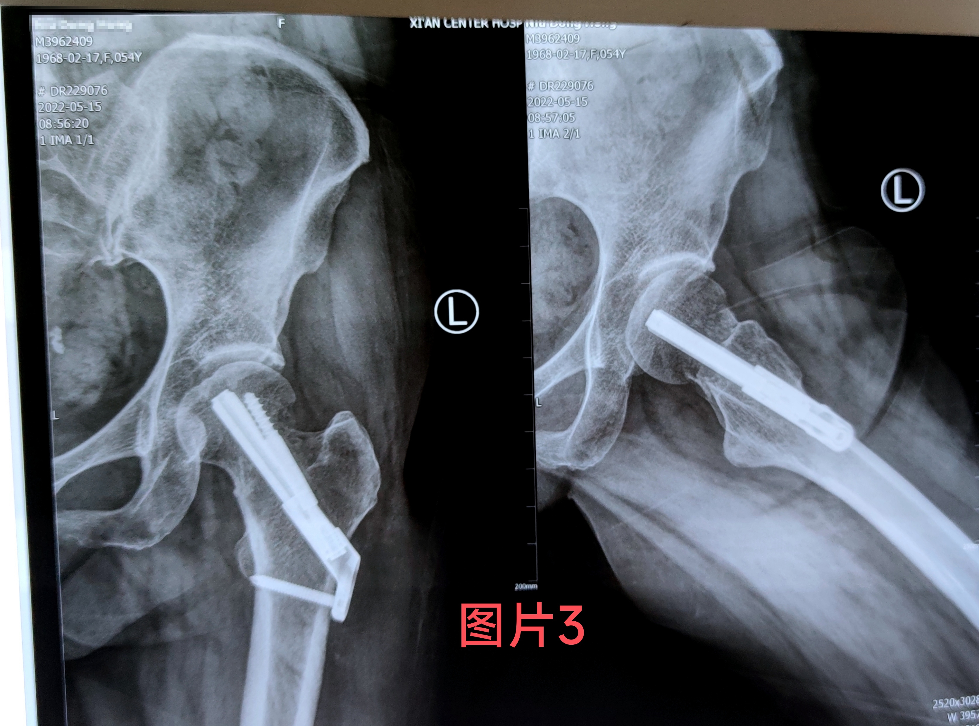 在做好相关术前准备后王涛主任医生为患者行骨折闭合复位FNS内固定手术,手术仅用半小时,手术切口3公分,手术创伤及时间比传统内固定手术大大减少,手术过程不对骨折周围血供产生干扰,最大可能地降低股骨头坏死的几率,术后当天患者无诉疼痛不适,随即开始功能锻炼。(图2)经一月复查固定牢靠,骨折无移位,无不适感(图3)。据王涛主任医生介绍股骨颈内固定系统(FNS)具有微创手术。时间短,创伤小,内固定支撑能力,防旋能力更为突出。具有力学稳定,滑动加压等优点,有利于患者早期恢复,降低股骨颈骨折不愈合发生率。王涛主任医生带领张磊卢洋主治医生治疗团队目前已为3例进行了此类手术均取得良好的手术疗效及治疗经验。填补了我院空白。
