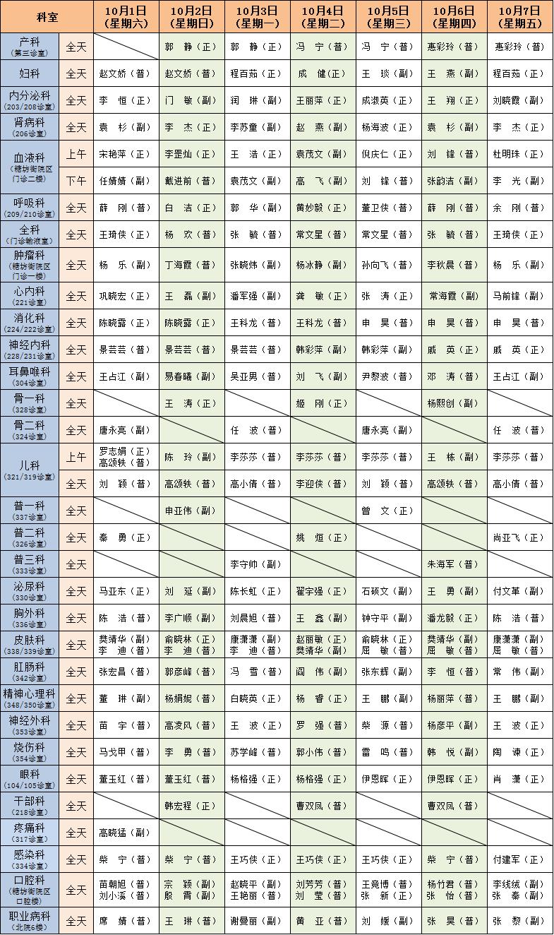 2022年国庆假期门诊工作安排