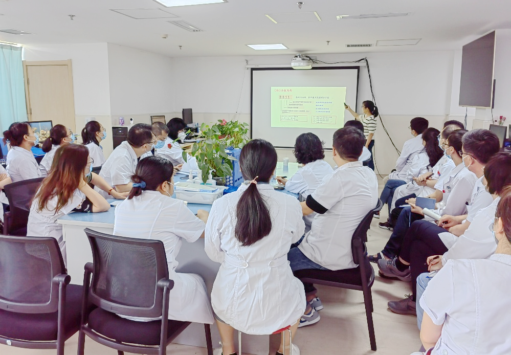 6月14日晨交班后,血研所全体医务人员再次组织细化学习了彭蓉主任的授课内容,积极讨论,成立科室DRGs小组,提高医疗质量,做好DRGs工作。