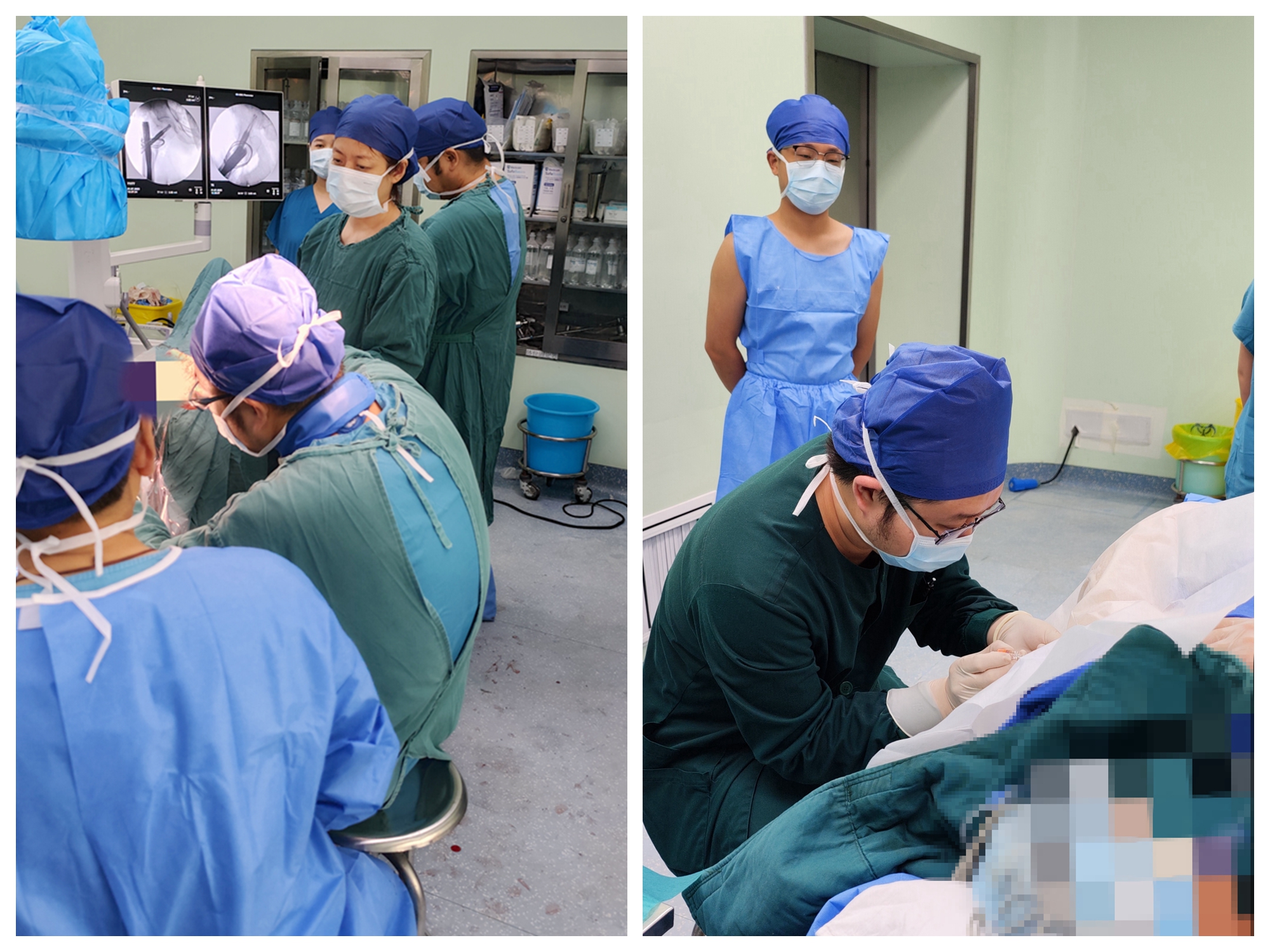 入院后第3天,麻醉科崔晓岗主任、武毅医师克服老年人脊柱侧弯增生退变导致的麻醉穿刺困难等因素,完成了腰部麻醉,保障了手术的首要安全。由骨一科王涛主任医师及张磊主治医师、手术室刘静护士长、王艳华、何芙蓉护士组成手术团队,历经2小时顺利完成髋部大转子粉碎性骨折复位内固定手术。术后在科室护理团队精心护理下,制定个性化康复方案,减轻疼痛、预防并发症,避免谵妄引起的再伤害。康复训练贯穿到整个康复过程。使超高龄髋部手术患者于术后1周左右顺利出院。