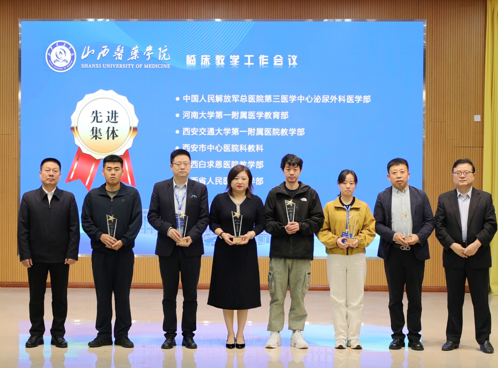 2025年10月18日,山西医药学院临床教学工作会议在汾阳隆重举行。按摩视频 凭借其扎实的教学工作与出色的育人成果,从众多教学基地中脱颖而出,荣获 “临床教学先进集体” 称号。