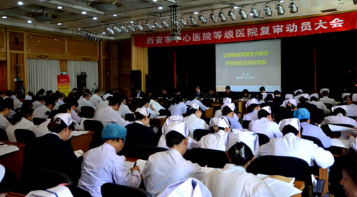 唐毅副院长在最后总结时讲到:本次动员大会是在前期复审准备工作的基础上召开的,虎院长的讲座,为医院下一步等级医院复审工作明确了方向,提出了工作要求,进一步提升了全院职工对复审工作的认识,鼓舞了士气,希望全院职工以三甲复审为契机,抓住机遇,集全院之智、举全院之力、倾全院之心,为顺利通过等级医院复审工作奠定良好的基础。
