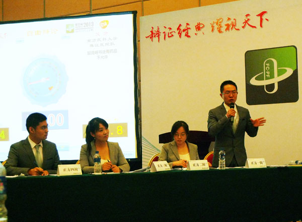 我院药师闫抗抗(右一)在全国青年药师辩论赛中