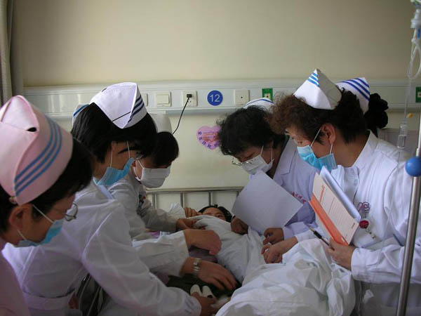 、市儿童医院、市第四医院、市红十字会医院护理部主任等专家,对我市收治玉树地震伤员的3所医院临床护理工作进行了业务大查房。 专家组首先听取了病区护士长对伤员护理情况的全面介绍,并深入病房,对3所医院的24位重症伤员逐一进行了业务查房,重点对9位临床护理问题复杂伤员的全身情况、专科情况、心理问题进行了查体、询问等方面的评估,提出了护理诊断和问题,针对每位伤员的护理诊断和问题,专家组认真进行了讨论,对9位伤员的护理逐一提出了护理计划和需采取的护理措施的意见和建议。另外,3所医院伤员病区的护士长,分别就伤员病区在护理中遇到专业方面的困惑问题与专家组进行了探讨。 最后,专家组对3所医院为伤员提供的爱心护理、精细护理、视伤员如亲人的亲情护理给予充分肯定,希望继续发扬救死扶伤的人道主义精神,全心全意做好伤员的护理工作,让伤员满意,让政府放心。 查房结束时,3所医院的护理部主任、护士长一致认为,通过市卫生局组织的护理专家大查房,使他们从各个专业方面全面学习到了临床护理的经验和护理新方法、新观念,表示决心继续认真做好伤员的护理工作,每日对伤员的护理情况进行评估,针对性地做好每位伤员疾病和心理护理、健康教育护理等,把西安人民对灾区同胞的关心传递给每位伤病员。