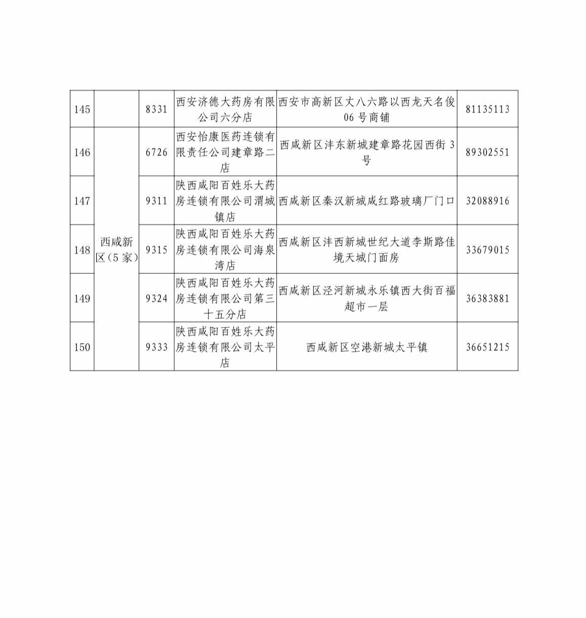 二、西安市基本医疗保险慢性病定点零售药店名单