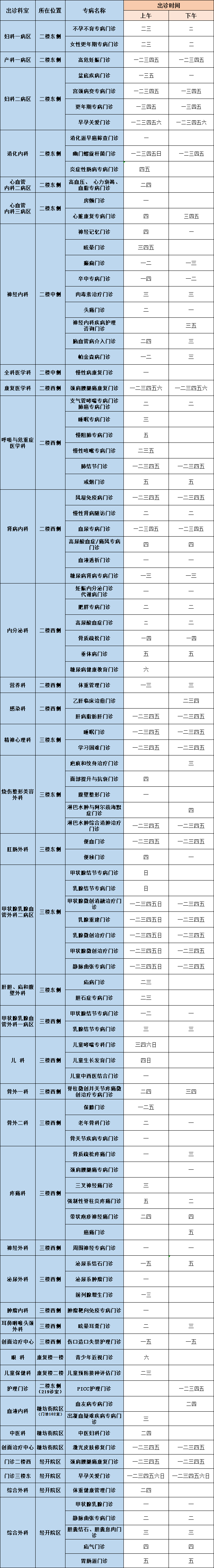 按摩视频 周末专病门诊医师出诊安排(9月20日——9月21日)