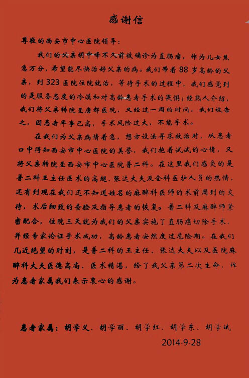 感谢普2科王主任、张达及麻醉科和全体护理人员